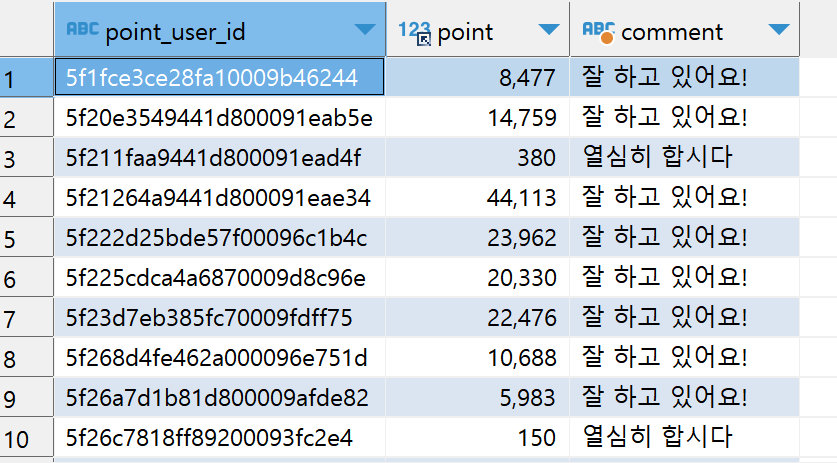 select pu.point_user_id, pu.point,