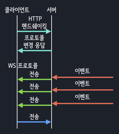 - 클라이언트/서버 상호 간에 즉시성이 높은 데이터 전송