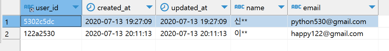 퀴즈1) Gmail을 사용하는 2020/07/12~13에 가입한 유저를 추출하기