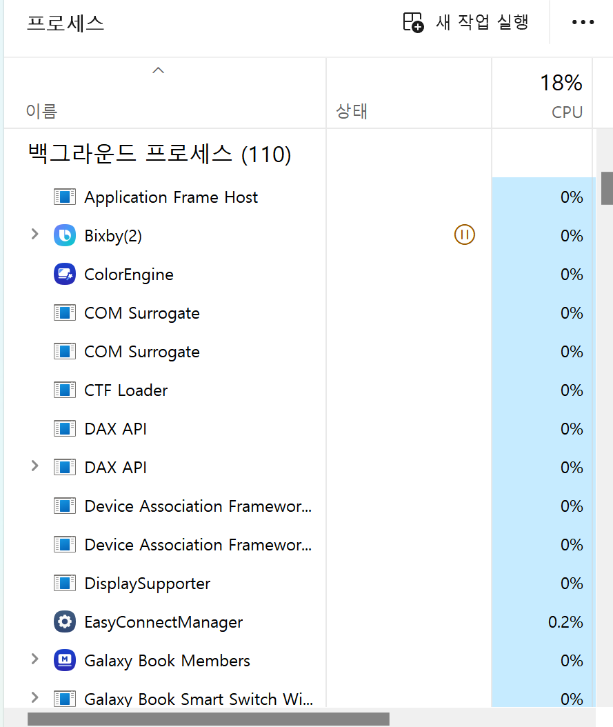- 백그라운드 프로세스: 사용자가 볼 수 없는 공간에서 실행되는 프로세스