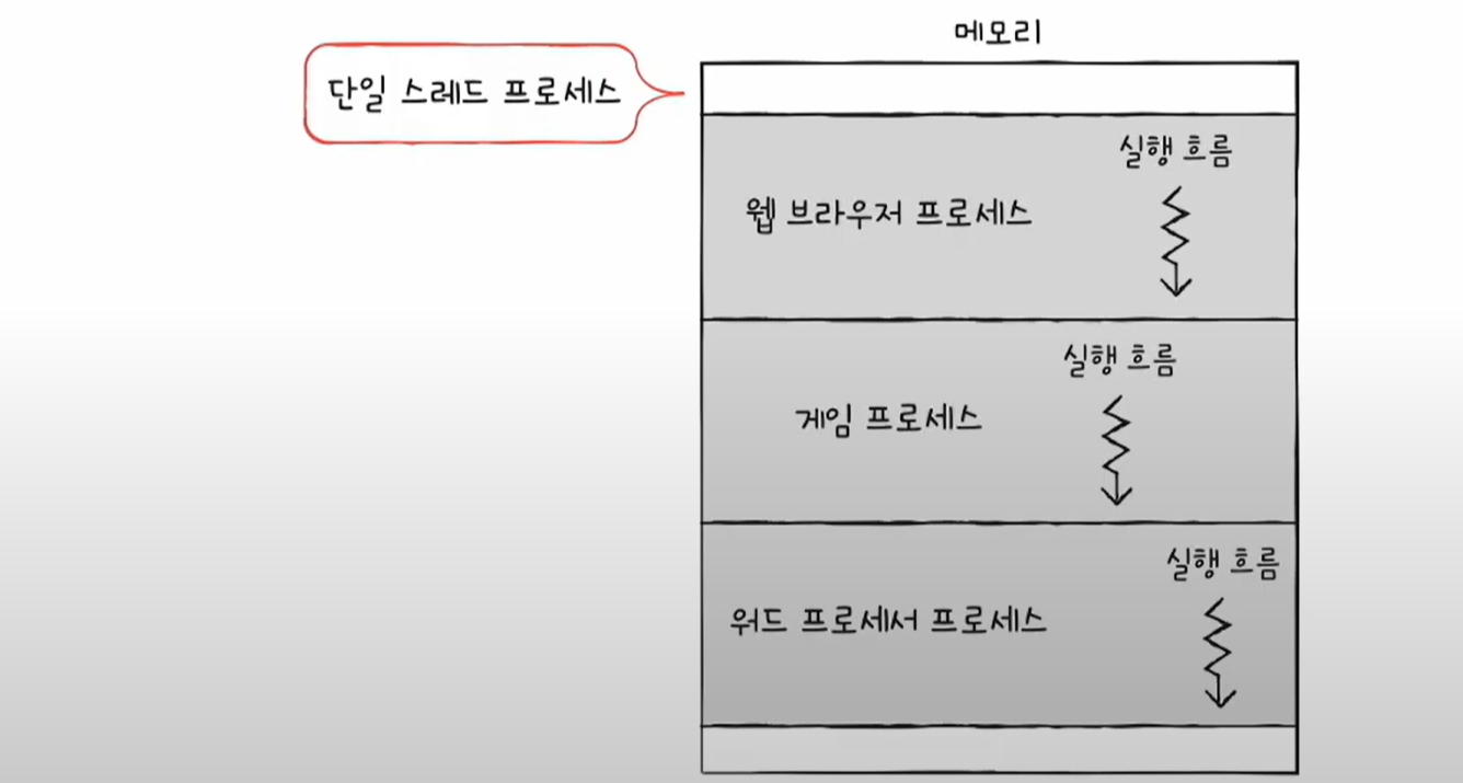 ① 단일 스레드 프로세스: 실행 흐름이 하나인 프로세스