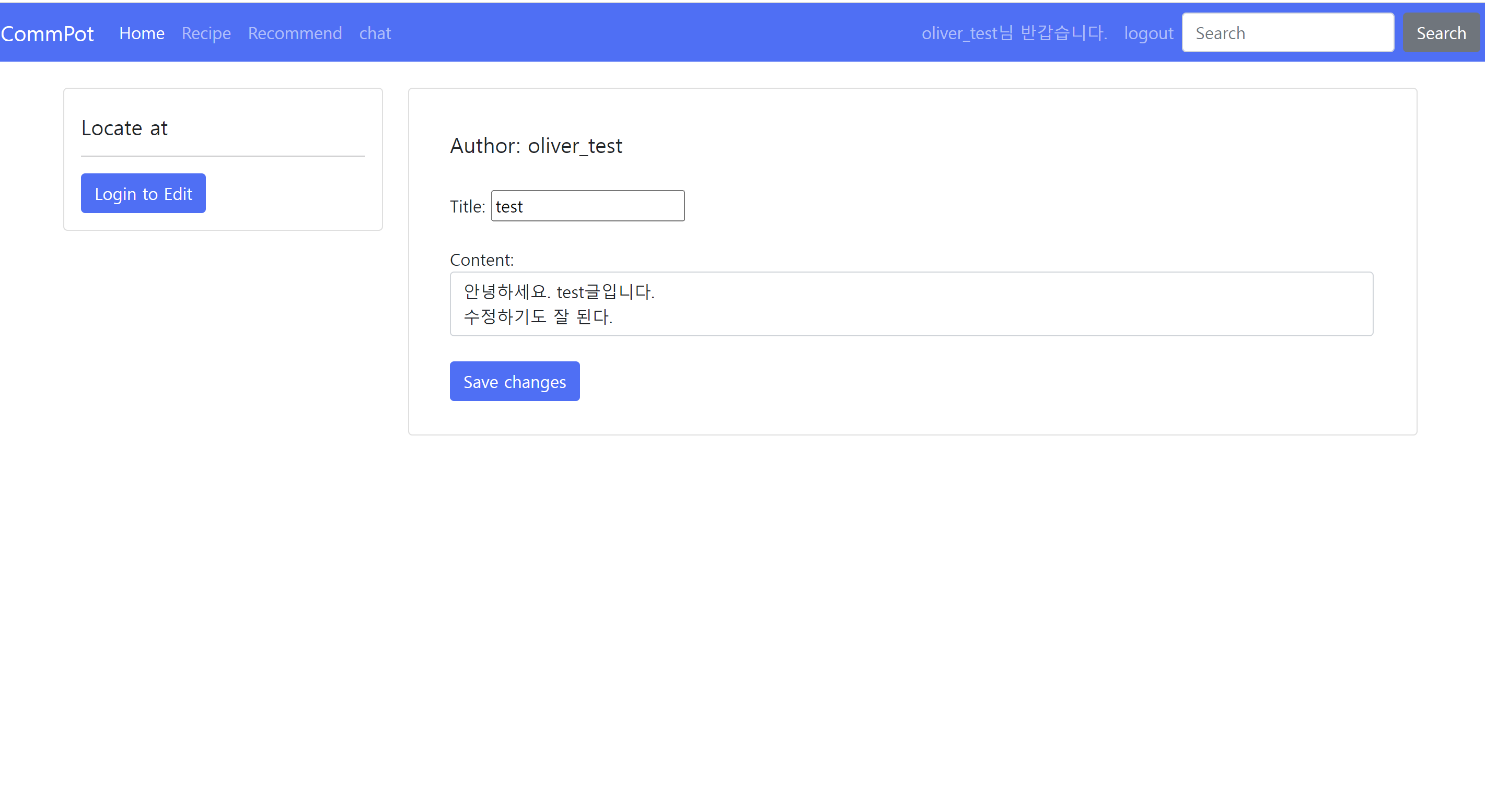 수정 버튼을 누르면 수정하는 페이지 post_edit html로 이동된다.