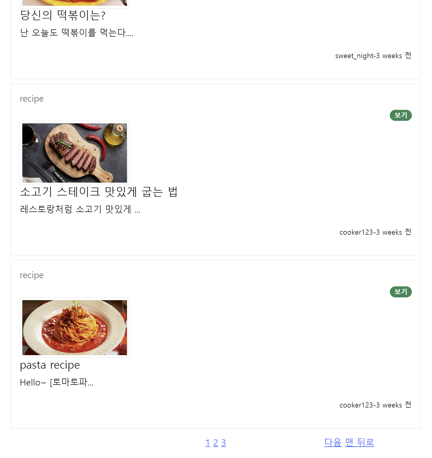 모든 게시글을 가지고 와서, 한 페이지에 해당하는 게시글 수만큼 보여주고, 다음 페이지로 넘어가자!