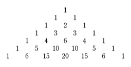 return [1] + [(pascal(n-1)[i])+(pascal(n-1)[i+1]) for i in range(n-2)] +[1]