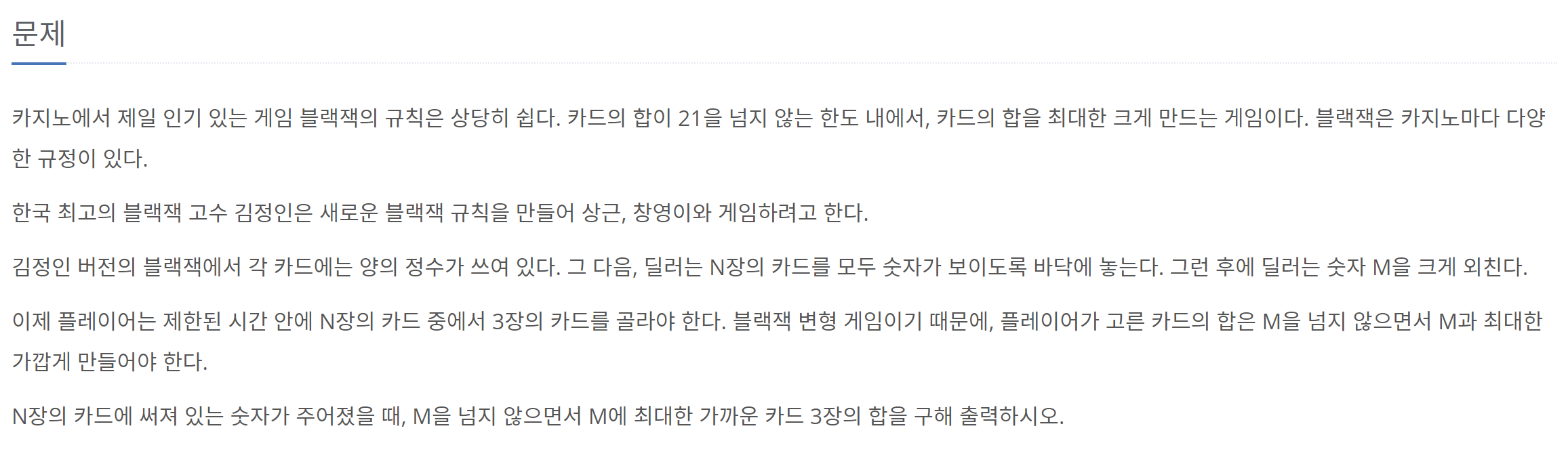 3개의 카드를 뽑아야하고, 모든 경우를 비교해봐야해서 3중 for문을 이용해서 코드를 짰다.