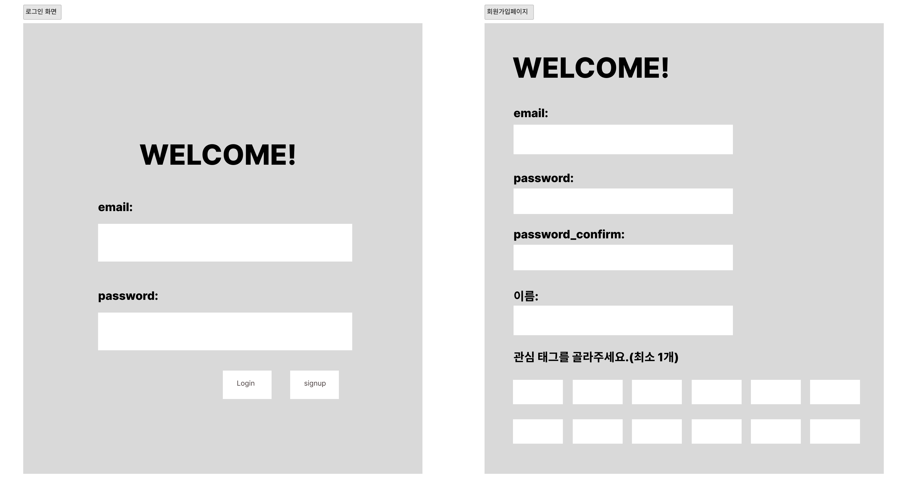 이번 프로젝트도 백엔드 기능 구현에 초점을 맞춰서 진행을 하기 때문에 시간이 가능하다면 와이어프레임처럼 디자인까지 신경쓰게 될 것 같습니다.